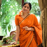 Orange and black - Heartbeat Anumol Silk cotton Handloom saree