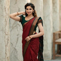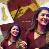 Nayanthara award saree - Maroon Khadi saree with gold tissue zari pallu