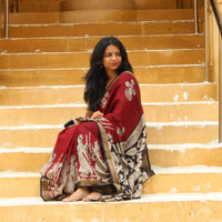 Pen Kalamkari - Maroon Annaparavai Silk Saree