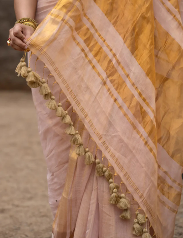 Each drape is born on artisan looms, where patience, skill, and sustainability are not trends but traditions. The subtle irregularities in every weave are reminders that true beauty lies in authenticity.
