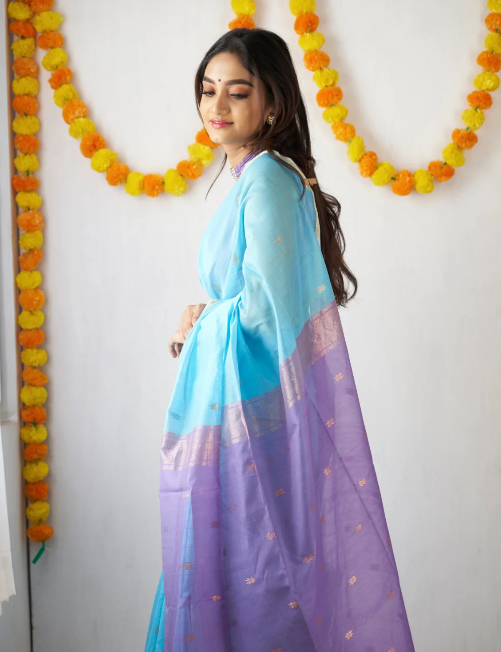 Sky Blue and Lavender - Silk cotton saree