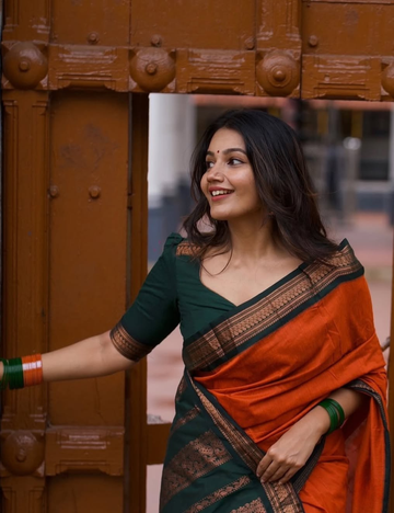 Bottle Green and Navy Blue - Silk cotton Handloom Saree