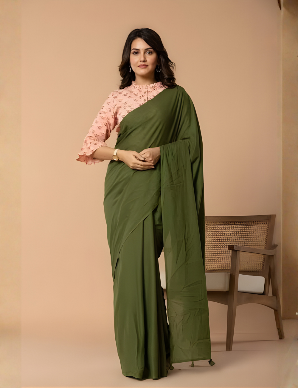 Peacock Green Kanchi Soft Silk Saree – Handloom Semi Silk