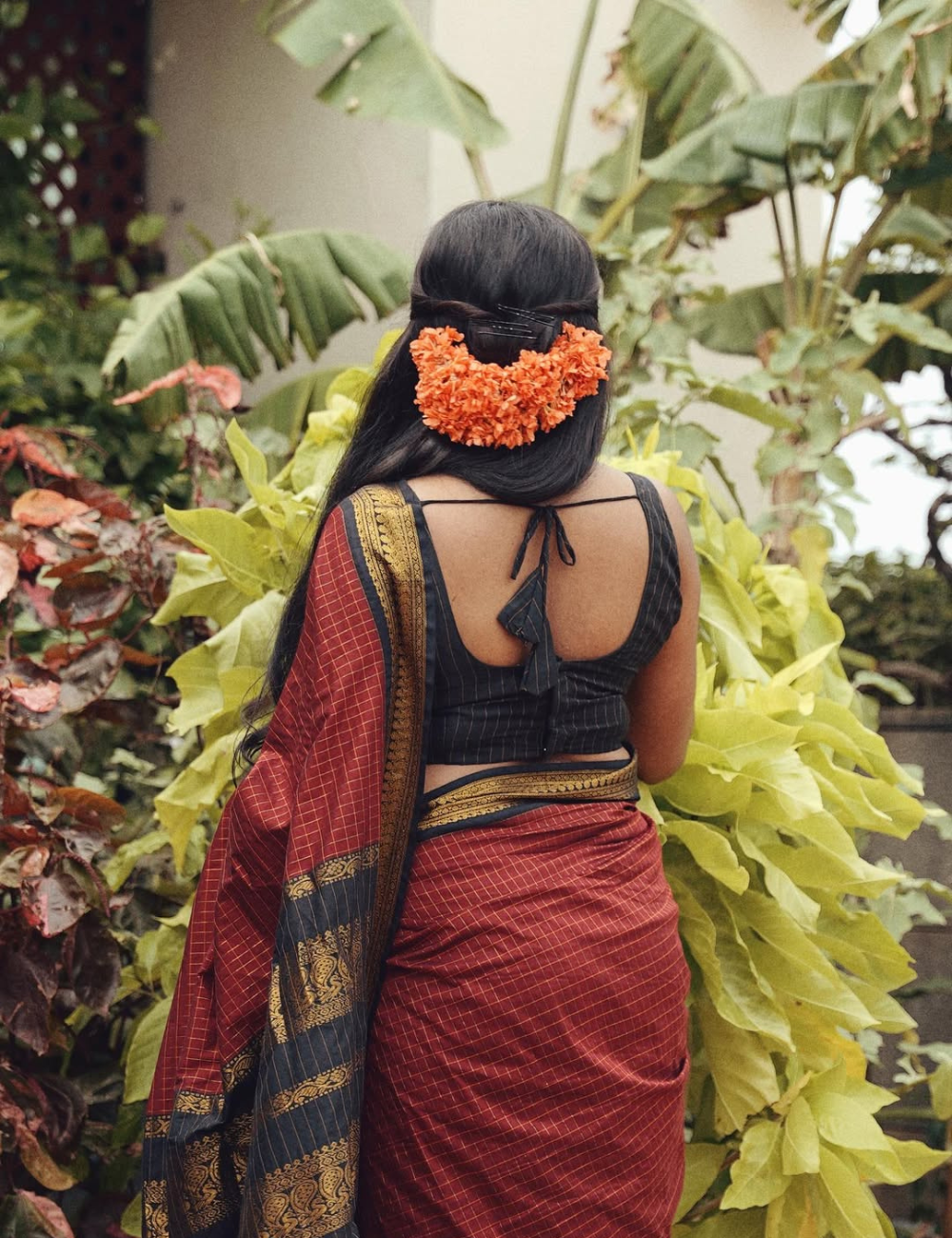 Nimisha Sajayan inspired Maroon with Black checked Silk Cotton Saree
