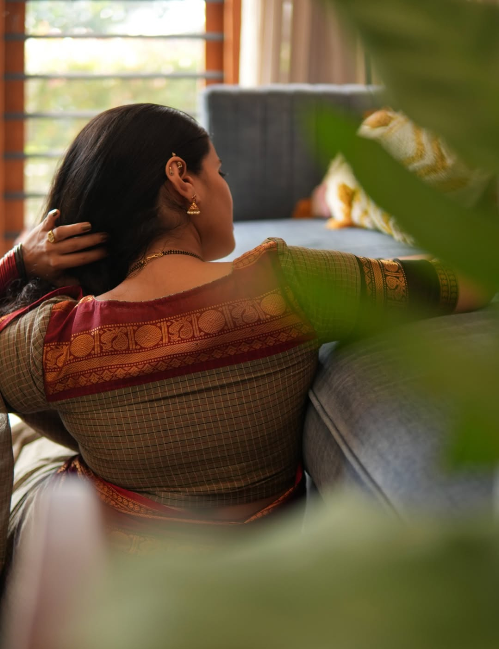 Aakaasa's Pure Cotton - Vintage Chettinad Kanchi Cotton checked Sarees with Ganga Jamuna Kanchi border in Korvai checks.