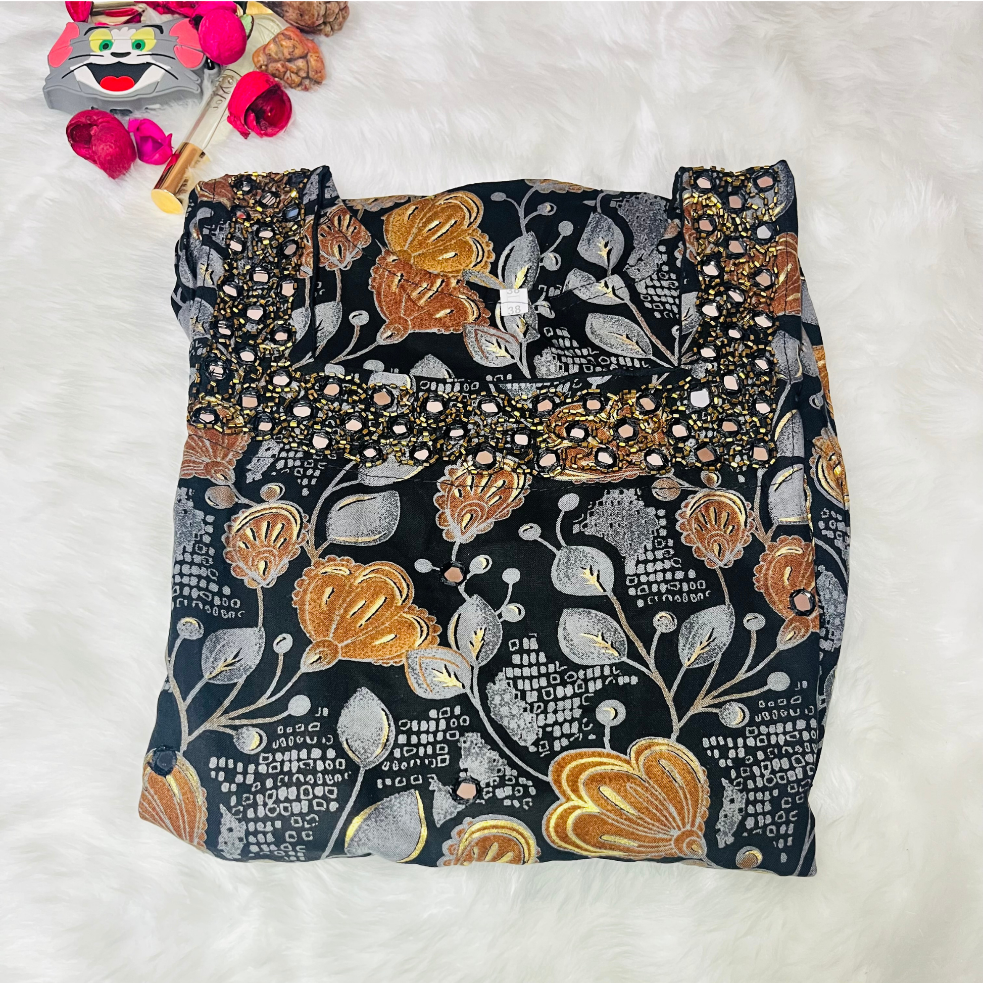 - Pattern: Midi Dress with Mirror Work on the Neck